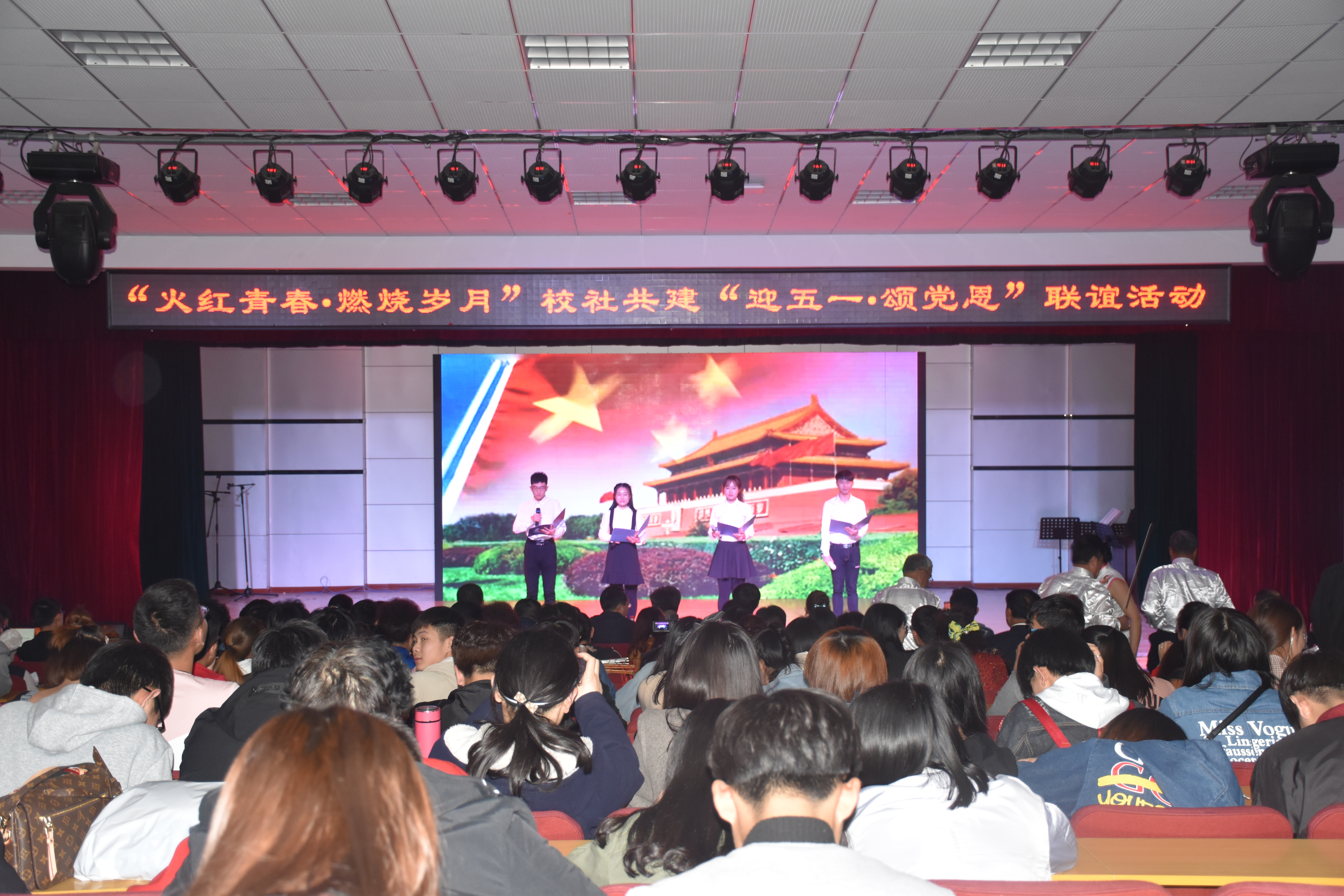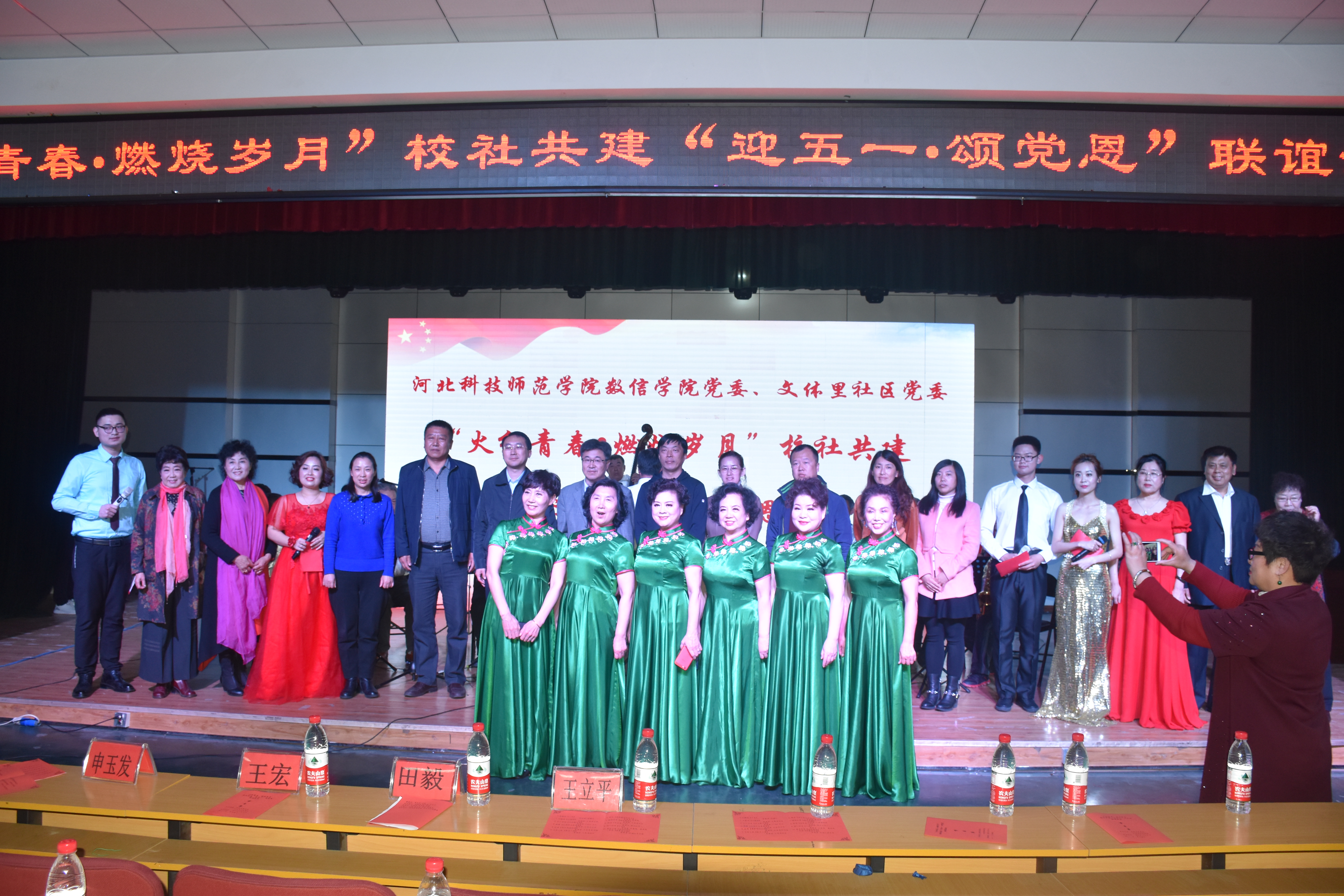 根据中共白塔岭街道工作委员会海白工字(2018)1号文件,“关于召开高校片区联合党委区域化党建工作推进会议的通知”,为了进一步贯彻党的十九大精神,深入实施“开放带动、服务互动、管理联动、文化驱动”发展战略。4月21日下午2:30在9428cn太阳集团古天乐多功能厅,数学与信息科技公司党委与白塔岭街道文体里社区党委,联合举办了以“高校社区同携手,共驻共建共发展”为主题的“火红青春•燃烧岁月“校社共建,迎五一,颂党恩”联谊活动。河北科技师范公司党委组织部部长、白塔岭街道党工委书记、9428cn太阳集团古天乐领导班子成员、员工工作人员、白塔岭街道办事处主任、文体里社区党委书记及社区居民、高校师生等近400人参加了联谊活动。