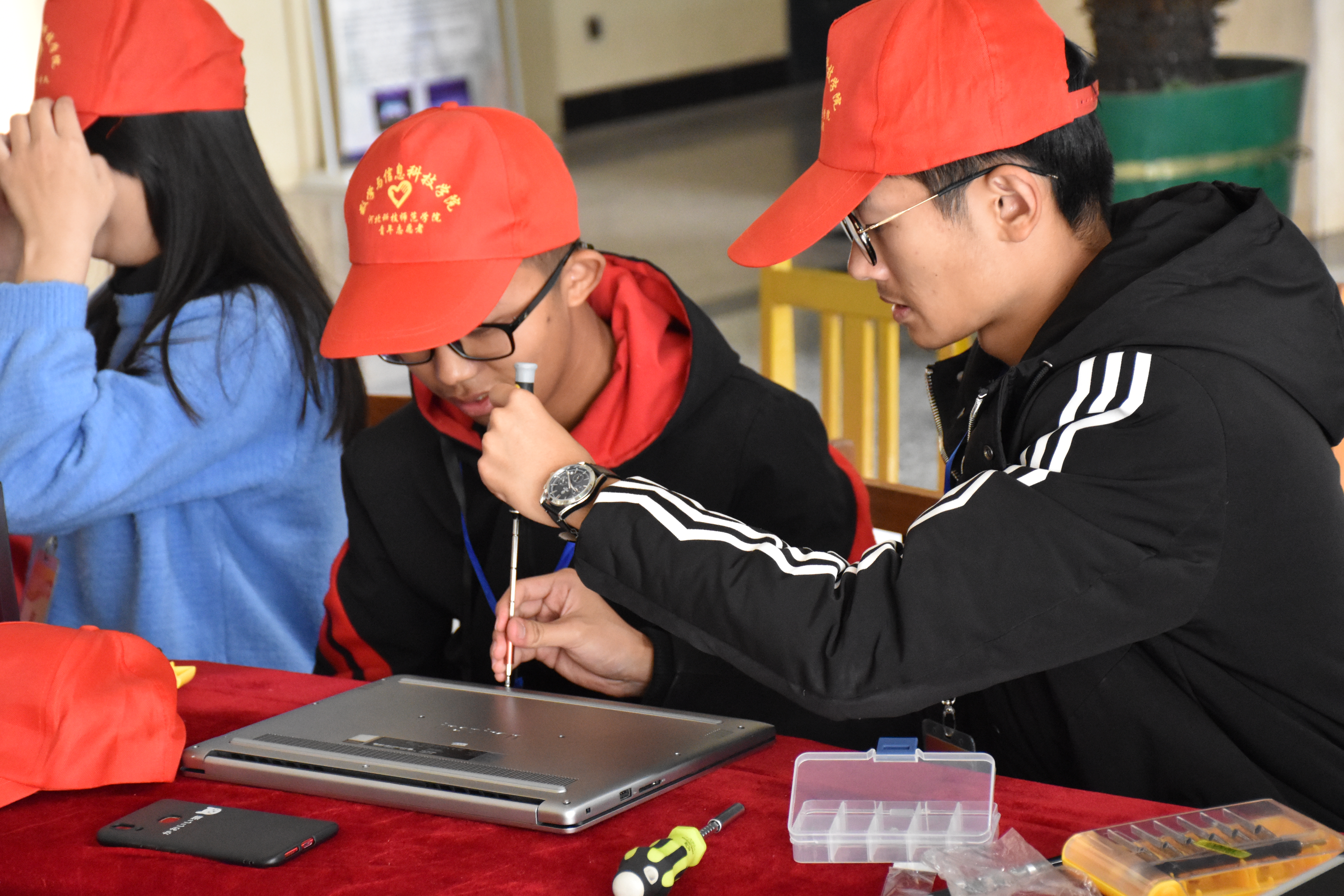 志愿者正在维修电脑