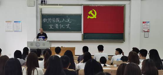 宣誓前,申玉发同志代表学院为员工党员做动员讲话,员工们情绪高涨。随后,由党员蒙海涛同志带领,近百名员工党员进行了庄重的入党宣誓,短短八十字的誓言是对党的庄严承诺。宣誓完毕后,申玉发同志为全体党员做了党史学习教育宣讲,向大家介绍了中国共产党的历史是我们党团结带领人民顽强奋斗的历史,我们党团结带领人民取得了三个伟大飞跃,分别是实现了从“东亚病夫”到站起来的伟大飞跃、实现了中华民族从站起来到富起来的伟大飞跃、迎来了中华民族从站起来、富起来到强起来的伟大飞跃。最后,对毕业生党员送出了美好的祝愿,对新发展党员提出了殷切期盼。