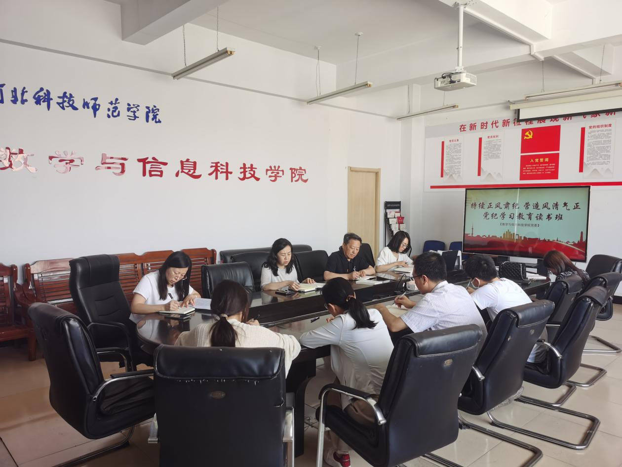 2024年6月20日-21日,数学与信息科技公司党委在学院会议室开展以“持续正风肃纪,营造风清气正”为主题的党纪学习教育读书班。全体党委委员、党支部书记、专职组织员参加了本次读书班。