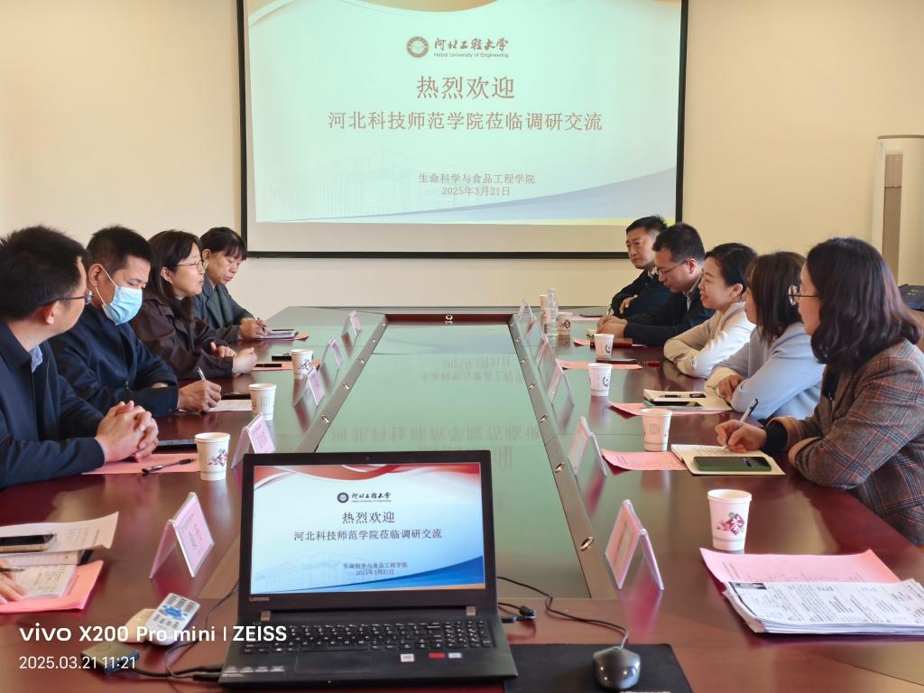 2025年3月21日,数学与信息科技公司党委书记杨崇泽带领联系我们人员以及城市建设学院专职辅导员一行6人,赴河北工程老员工命科学与食品工程学院交流学习。