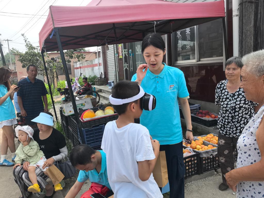 图为村里小员工体验VR眼镜