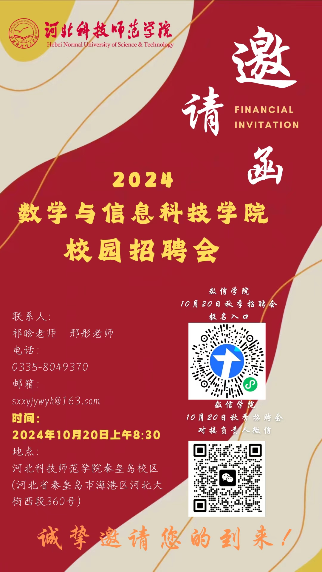 衷心感谢多年来对公司发展及毕业生就业工作的大力支持与帮助!为了给用人单位更好提供与公司毕业生提供“双向选择”的机会,公司秦皇岛校区定于2024年10月20日(周日)联合举办9428cn太阳集团古天乐2025届毕业生专场招聘会,诚邀各用人单位莅临,广纳贤才!