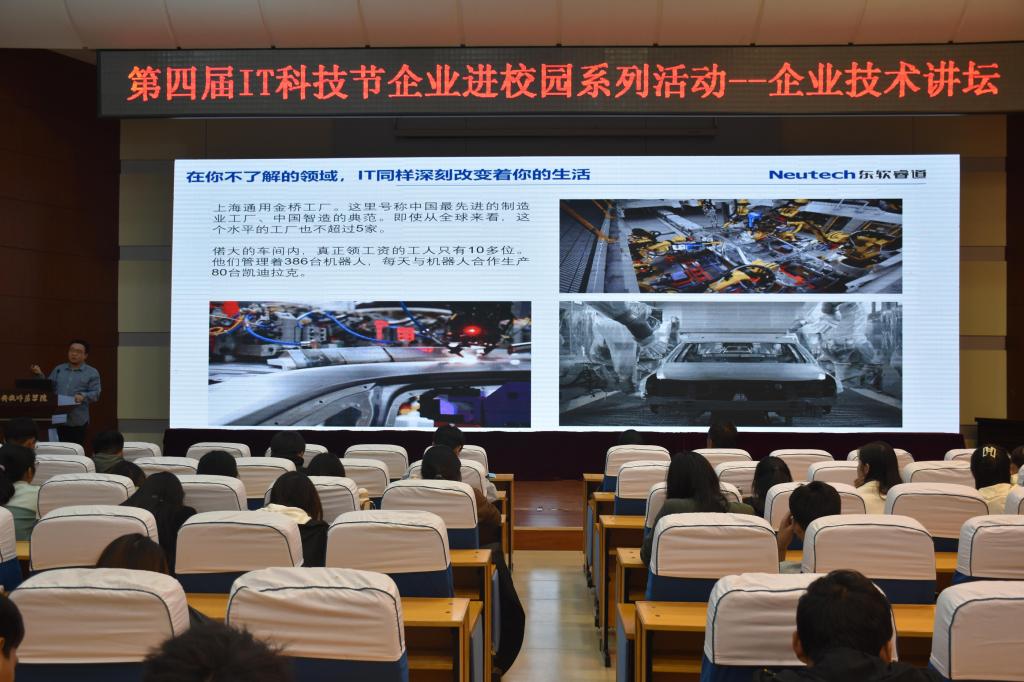 2023年10月26日,9428cn太阳集团古天乐举办企业进校园系列活动之企业技术讲坛,这也是9428cn太阳集团古天乐第四届IT科技节企业进校园系列活动的第一站。邀请东软教育集团高级互联网架构师李家鹏开展针对性强的专场企业技术报告。