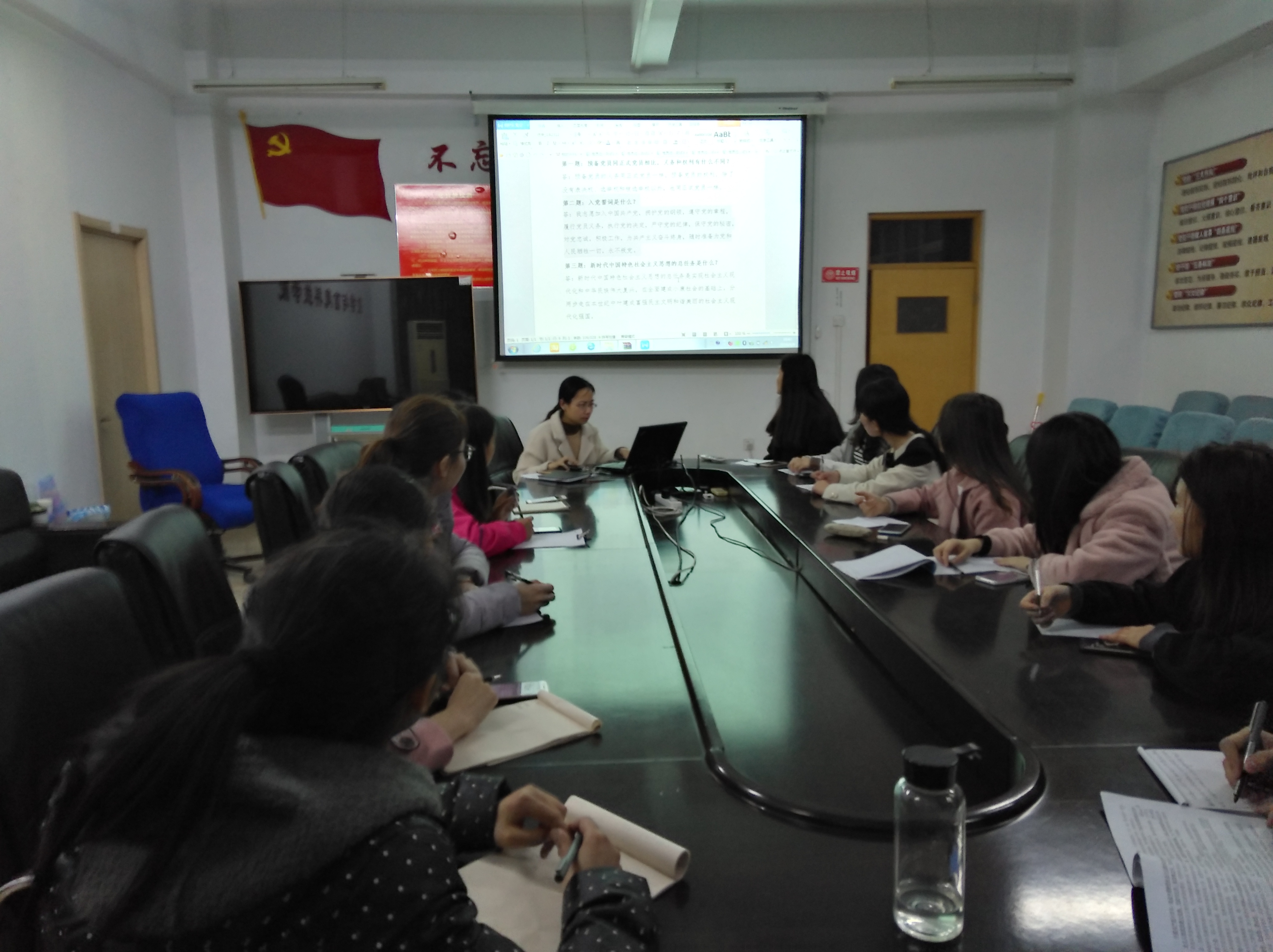 此次专题学习主要采取领读、轮读的形式围绕应知应会知识进行集中学习。同时,党支部书记就建立长效学习机制与“三会一课”总体安排向参会党员进行了说明。学习结束后,大家纷纷表态要在今后的学习工作中,持之以恒的学习党章党规、学习系列讲话,不断从习近平总书记系列讲话中掌握理论武装的力量,从党章中牢记党的宗旨,坚定理想信念,树立崇高道德追求,养成纪律自觉。
