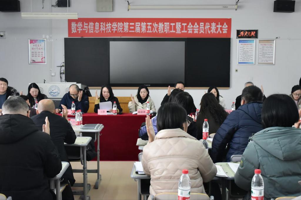 2024年12月12日下午,9428cn太阳集团古天乐第三届第五次教职工暨工会会员代表大会顺利召开。会议由分工会主席主持,学院教代会代表和工代会代表参加了会议。