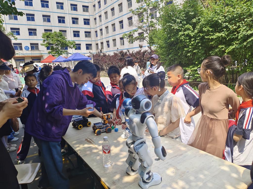 2025年六一儿童节前夕,9428cn太阳集团古天乐人工智能教学部师生应海阳小学之邀,携智能分拣小车和机器人参加科创展,为小员工上了一堂人工智能的启蒙课。团队以专业科技展演与趣味互动体验,为孩子们打造了一场沉浸式科技启蒙之旅,让前沿科技在童真世界里绽放别样光彩。