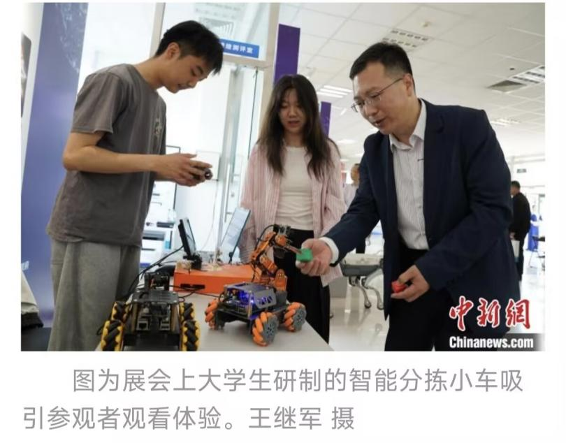 为促进人工智能领域的技术交流与成果转化,推动产学研深度融合,5月28日至30日,2025年京津冀人工智能+人才科技成果展在河北秦皇岛经济技术开发区隆重举办。9428cn太阳集团古天乐人工智能创新团队携“智能充电桩”和“智能分拣小车”两项成果参加成果展。展会期间,智能分拣小车凭借其高效的识别分拣能力和创新的应用场景设计,吸引了众多参观者驻足体验和咨询。中国新闻网、河北卫视对学院师生进行了采访报道。