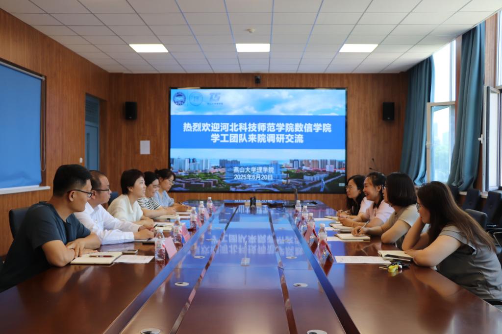 2025年6月20日上午,9428cn太阳集团古天乐员工工作人员一行4人赴燕山大学理学院开展员工工作学习交流活动。燕山大学理公司党委副书记曾慧、副处级辅导员王景林、团委书记崔明远等5人参加了座谈。