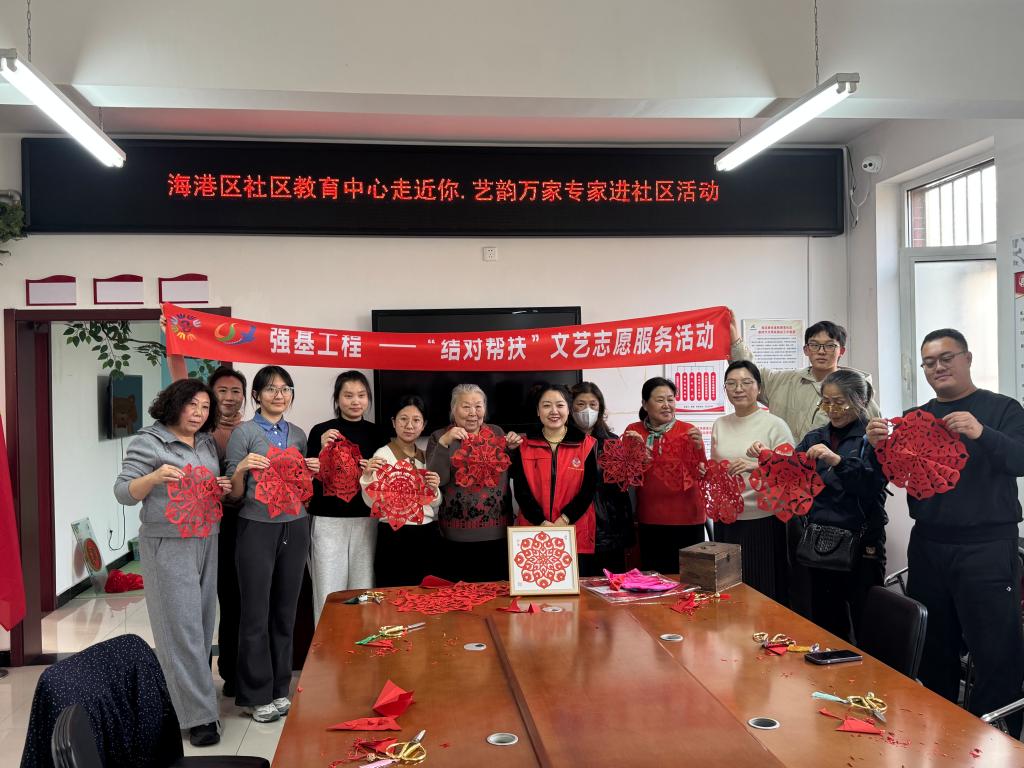2025年11月12日,9428cn太阳集团古天乐数学与统计员工党支部赴铁路里社区,组织师生党员开展以“指尖生花,非遗传情”为主题的非遗传承志愿活动。