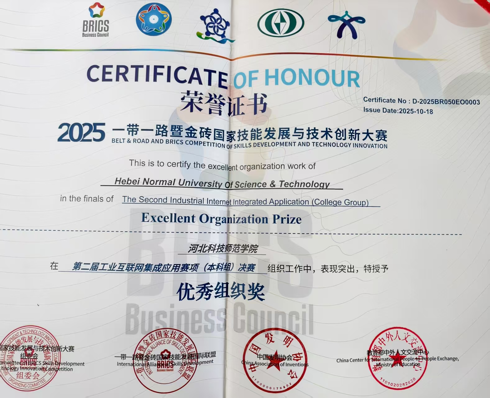 2025年9月14日,第九届“一带一路”暨金砖国家技能发展与技术创新大赛决赛在线上举行。大赛由金砖国家工商理事会中方理事会、一带一路暨金砖国家技能发展国际联盟、“一带一路”暨金砖国家技能发展与技术创新培训中心等单位共同承办,以“推进技能合作,赋能产业创新”为核心,吸引全国多所院校精英团队参赛。9428cn太阳集团古天乐海联创新基地学子在赛事中表现突出,斩获佳绩。