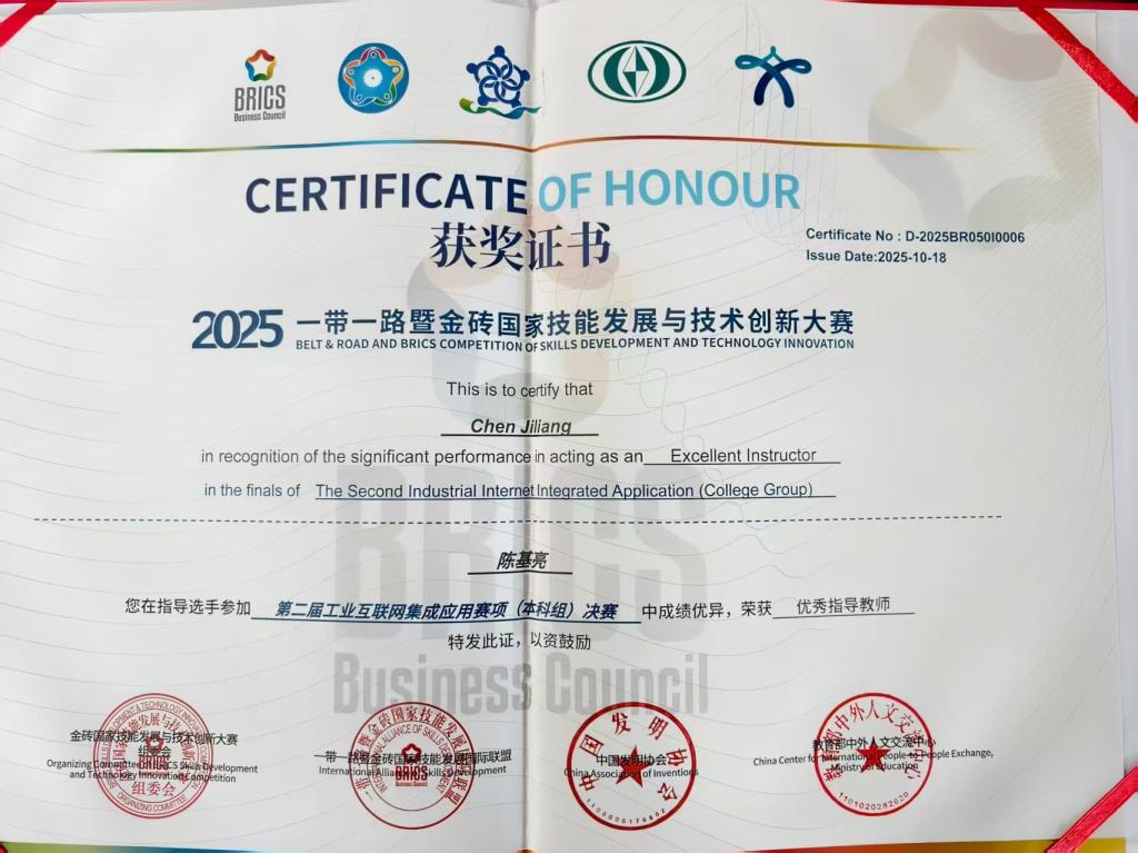 成绩的取得是师生协作、刻苦攻关的成果,更是学院工业互联网应用领域教育实践成效的生动体现。赛事不仅为学子搭建了创新实践平台,也深化了学院与北京京胜世纪科技有限公司的校企合作。参赛学子同步参与技能培训、赛项交流等活动,进一步拓展了专业视野。(编辑:代波 审核:杨崇泽)