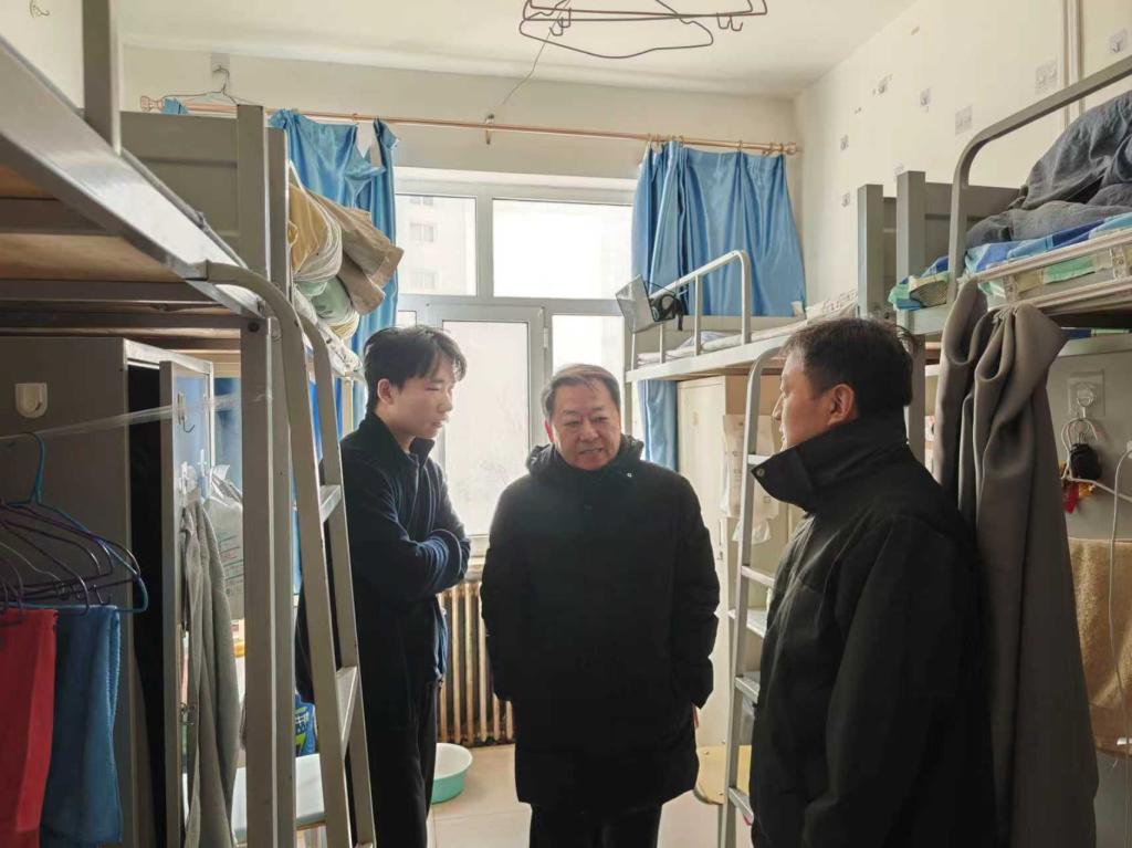 会议结束后,学院组建联合检查组,深入研究生宿舍、工作室及学院实验室开展全面安全隐患排查与暖心慰问。检查组重点对各场所用电规范、消防设施完好情况、物品堆放秩序等进行细致核查,对发现的问题现场反馈并提出整改意见。走访中,学院领导与同学们亲切交谈,详细询问住宿条件、日常就餐等生活细节,叮嘱大家合理安排学习与生活,互帮互助,保持与家人的密切联系。