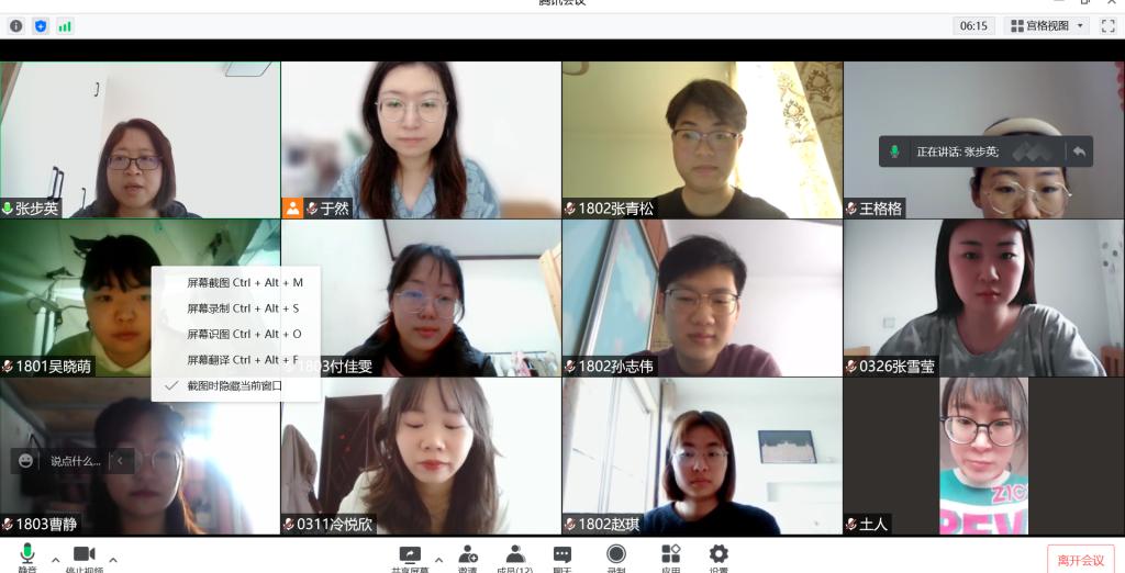 线上答辩通过腾讯会议进行,提前成立了由18名毕业论文指导教师组成的9个答辩小组,并对答辩各个环节进行了明确要求。每位员工事先制作PPT通过屏幕共享陈述时间为5分钟,陈述完毕后由评委老师提问或者提出修改建议和意见。此次毕业论文开题报告的问题主要集中在论文题目过于宽泛、研究内容不够明确具体,创新点不够突出。